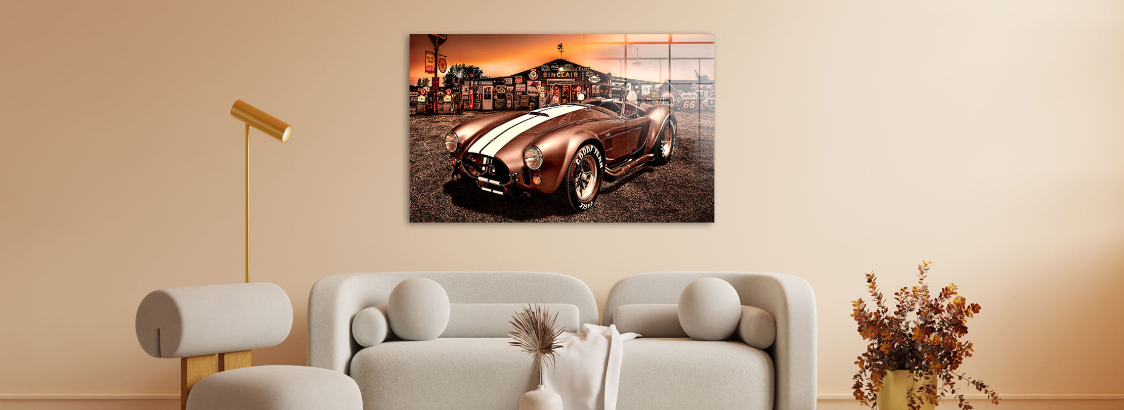 Kaum ein Auto steht so sehr für rohe Kraft und puren Fahrspaß wie die AC Cobra. Ihre bullige Form, der tiefe Sound, der Motorsport-Charakter – alles daran ist ikonisch. Wenn du dir dieses Gefühl nach Hause holen willst, ist ein Wandbild auf Acrylglas genau das Richtige.