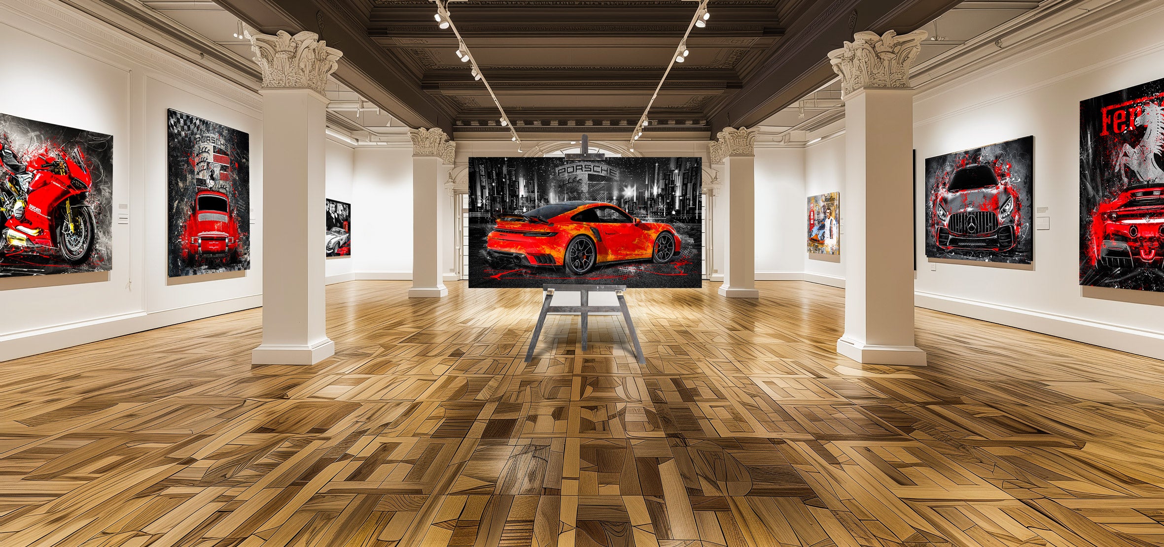 Acrylglas bietet eine außergewöhnliche Tiefenwirkung und Farbbrillanz, die besonders bei detailreichen Automotiven zur Geltung kommt. Das Material wirkt modern, edel und passt perfekt zu puristischen oder hochwertigen Einrichtungsstilen. Gleichzeitig schützt es das Motiv vor Staub und UV-Strahlung.