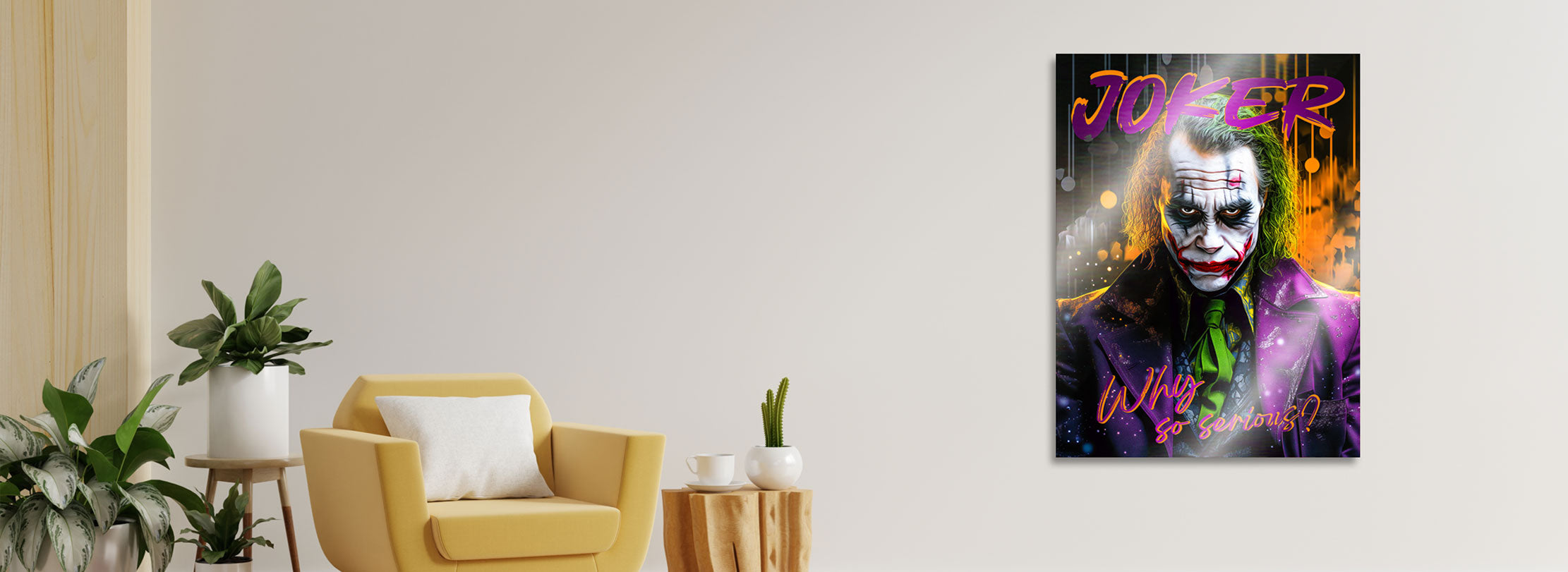 Stark im Ausdruck, edel im Material: Joker Bilder auf gebürstetem Alu Dibond bringen Charakter, Tiefe und eine ordentliche Portion Rebellion an die Wand. Sie eignen sich ideal für alle, die markante Statements lieben und Räume mit Persönlichkeit gestalten wollen.