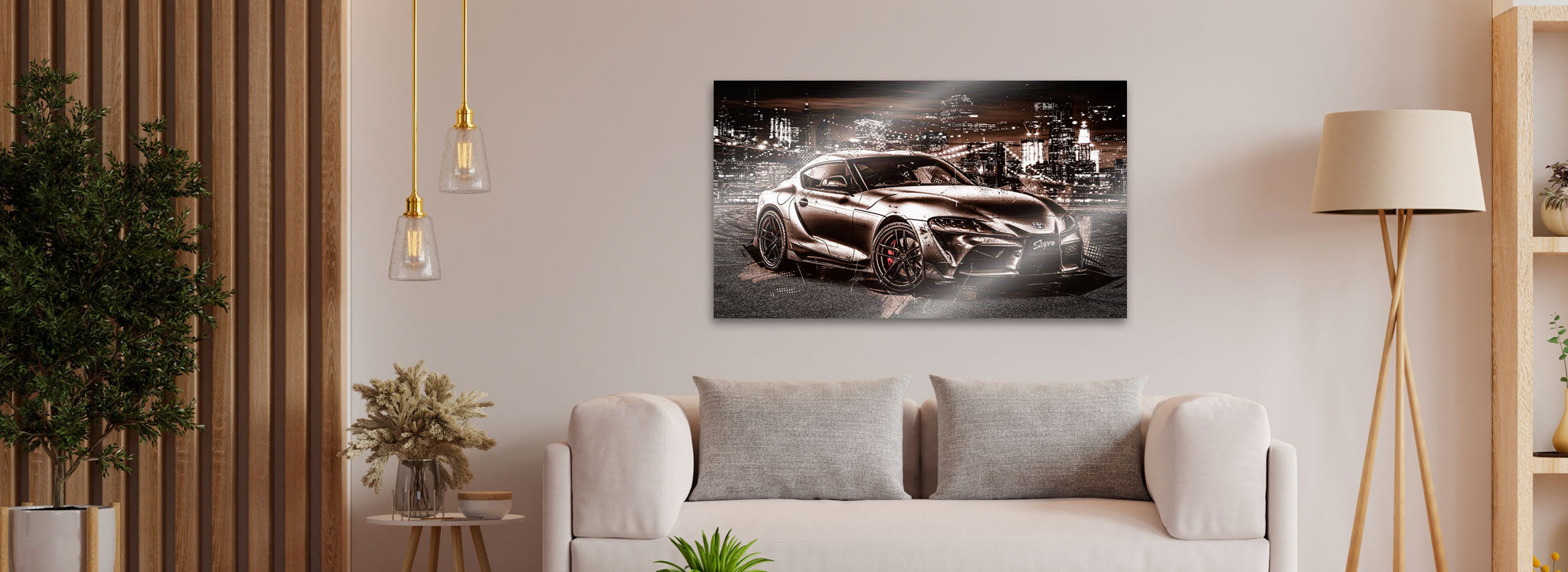 Ob sportlicher Toyota GR Supra ein robuster Hilux oder ein Klassiker wie der Land Cruiser – die Motive auf gebürstetem Alu Dibond machen in jedem Raum Eindruck. Besonders gut kommen sie in Umgebungen zur Geltung die eine klare moderne Designsprache haben. Auch in gewerblichen Bereichen wie Autohäusern Werkstätten oder Lounges sorgen sie für Stil und Wiedererkennungswert.