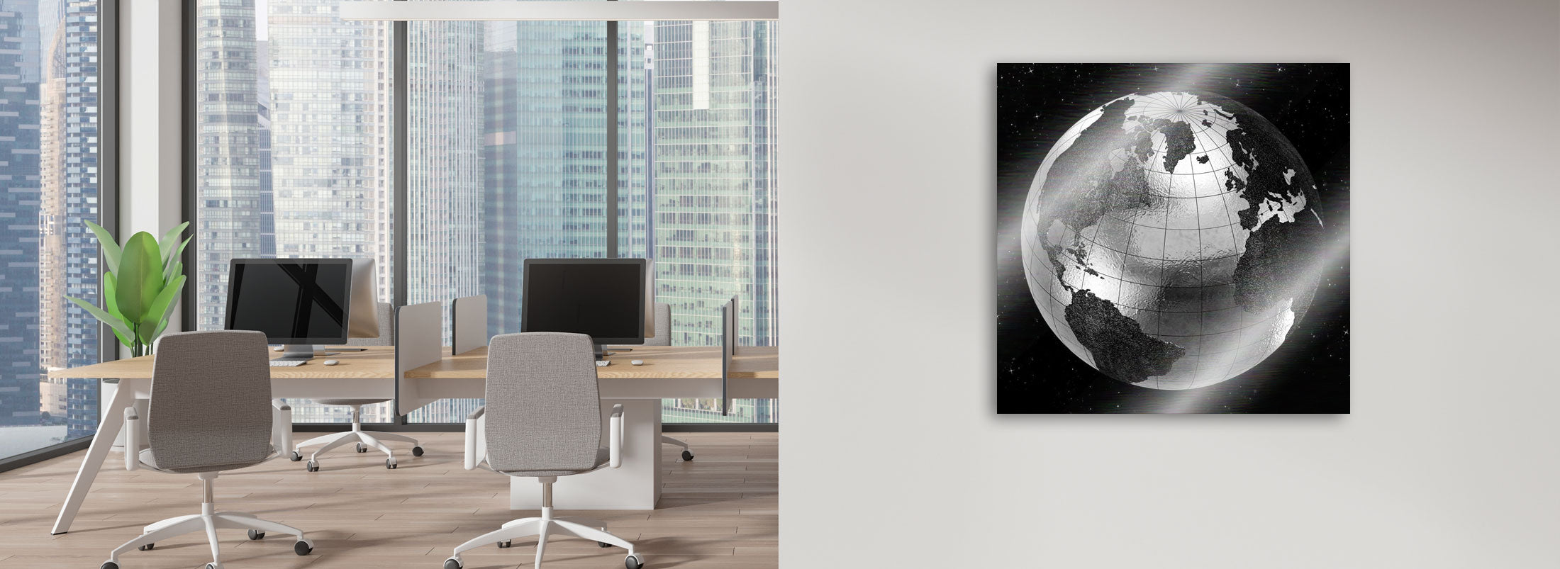 Weltkarten auf gebürstetem Aluminium – auch bekannt als Butlerfinish – bieten eine besondere visuelle Wirkung. Die gebürstete Oberfläche verleiht dem Bild eine moderne, industrielle Ästhetik mit edlem Glanz. Durch die sichtbare Metallstruktur wird das Weltkartenmotiv dezent in Szene gesetzt und verändert sich je nach Lichteinfall. Dabei scheint das Motiv teilweise mit dem Metall zu verschmelzen – ein Effekt, der besonders bei reduzierten, grafischen oder abstrakten Weltkartendesigns zur Geltung kommt. Diese Art der Darstellung eignet sich perfekt für moderne Wohnräume, kreative Arbeitsumgebungen oder minimalistische Interieurs, in denen Materialien eine zentrale Rolle spielen.