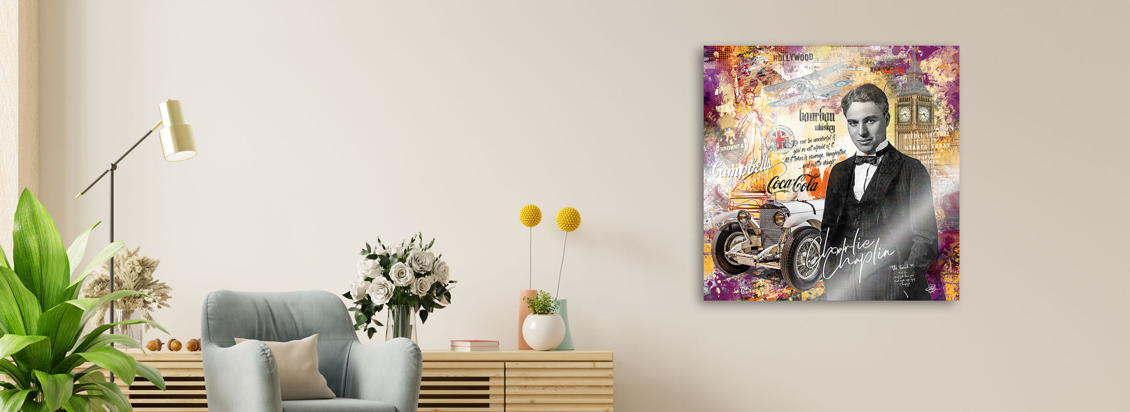 Ein Lächeln für die Ewigkeit – Charlie Chaplin Wandbilder auf gebürstetem Alu Dibond!