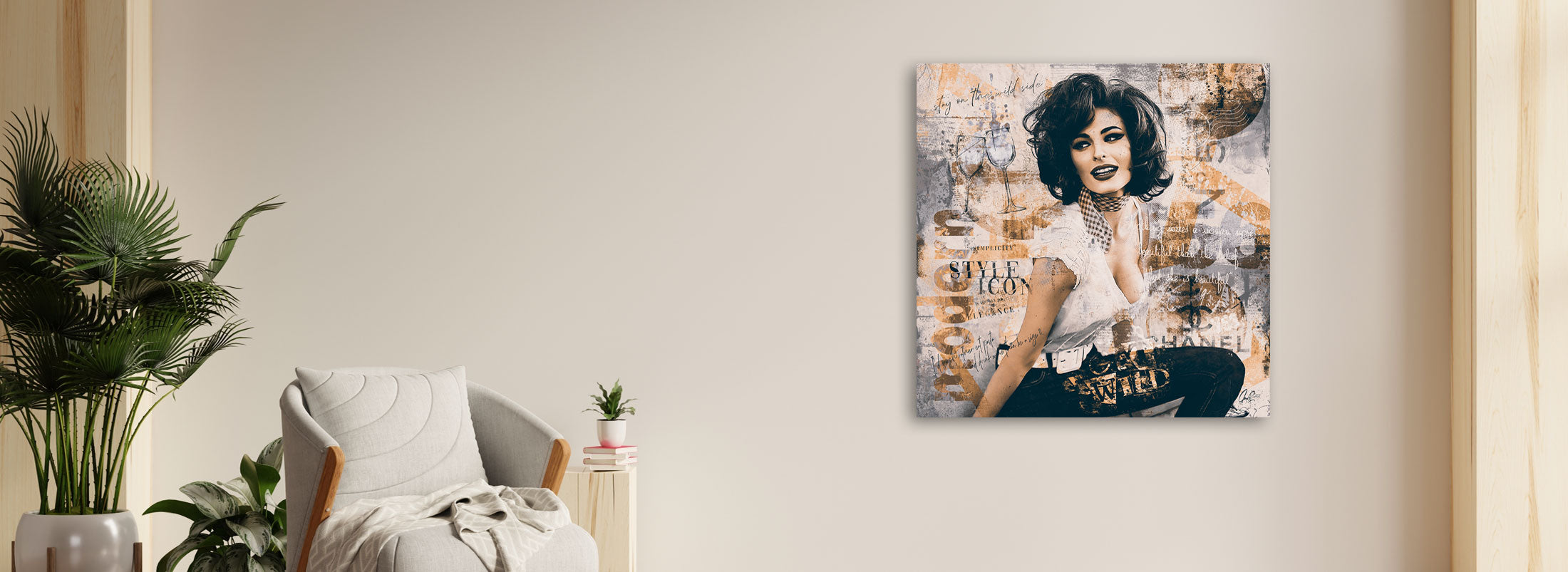 Ein Bild von Sophia Loren verändert die Atmosphäre eines Raums. Es bringt Ruhe, Klasse und eine subtile Spannung mit sich. Im Wohnzimmer, im Flur, im Arbeitszimmer – überall dort, wo Persönlichkeit gefragt ist, macht es sich gut. Dabei funktioniert es sowohl allein an der Wand als auch in Kombination mit anderen Motiven.