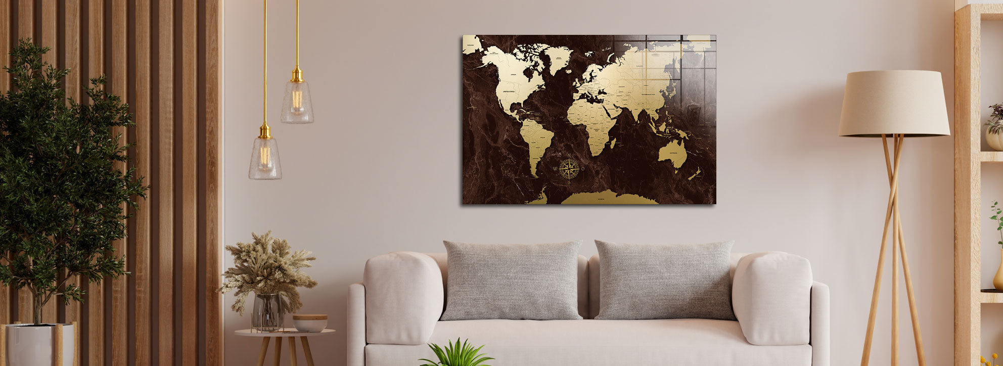 Blattgold Wandbild Weltkarte