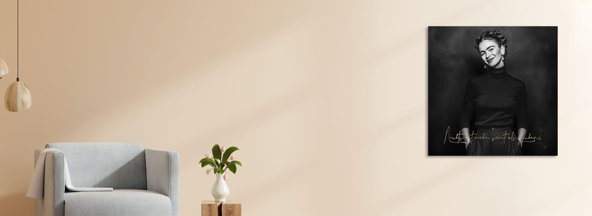 Frida Kahlo steht für Ausdruck, Individualität und emotionale Stärke. Mit einem Frida Kahlo Bild von ingalerie.de bringst du genau diese Energie in dein Zuhause – modern interpretiert, hochwertig gefertigt und stilvoll präsentiert.