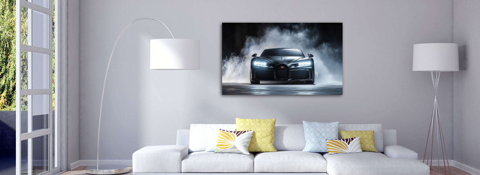 Gedruckt auf feiner Künstlerleinwand bleibt jeder Reflex im Klarlack, jede Carbonfaser sichtbar. Die matte Struktur nimmt Licht auf, damit Farben satt wirken und Konturen scharf bleiben, selbst bei Sonnenlicht. Ob Chiron im Abendrot oder Type 35 auf der Rennstrecke – das Bild wirkt plastisch, fast hörbar. So fühlt sich „Wandbild Bugatti kaufen“ wirklich an.