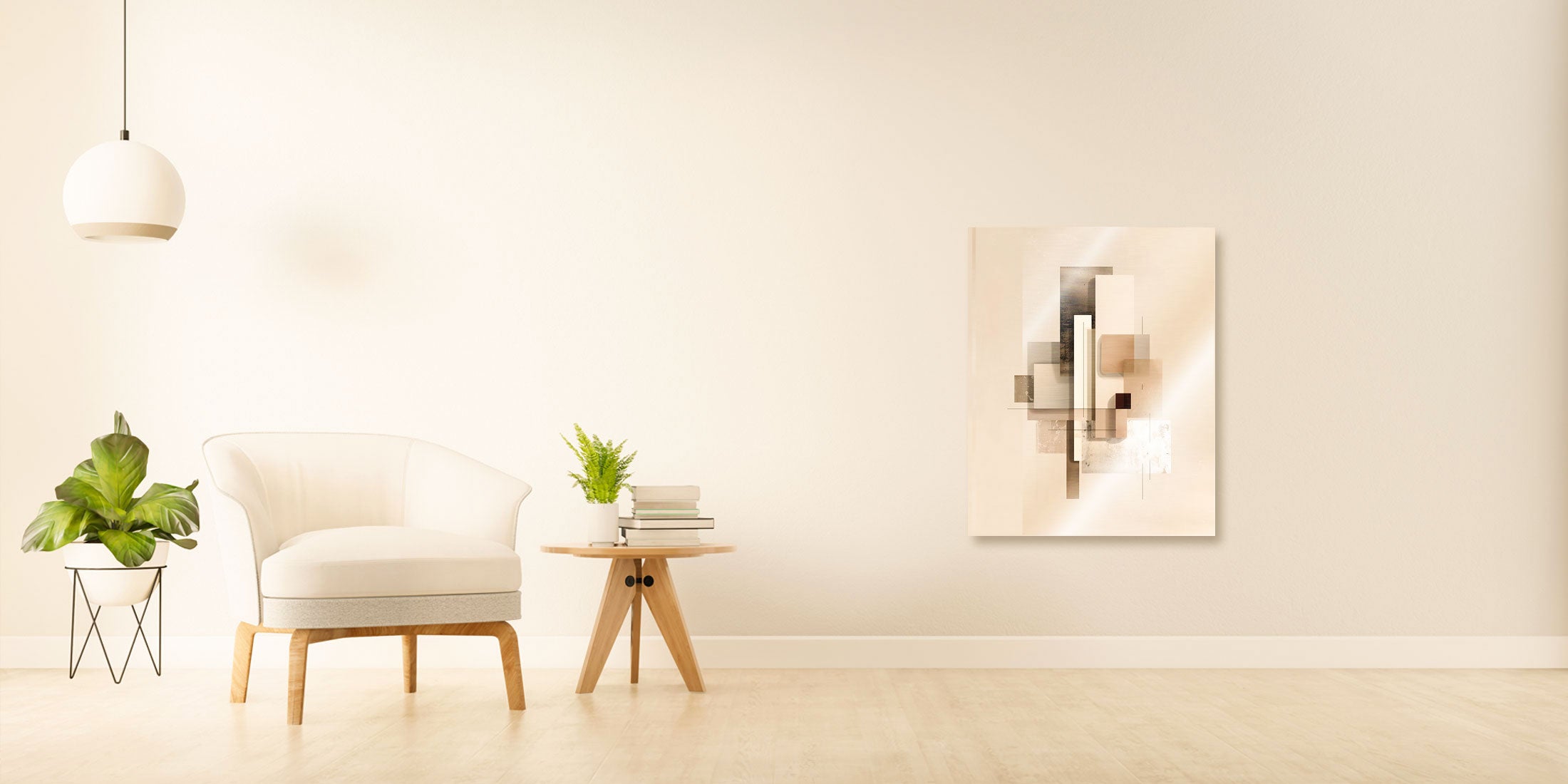 Für ruhige, sanfte Räume eignen sich Motive in Beige, Sand, Terrakotta oder Salbeigrün, mit floralen oder abstrakten Elementen. Sie bringen Ruhe und Natürlichkeit in Wohn- oder Schlafräume.